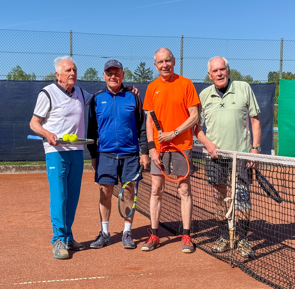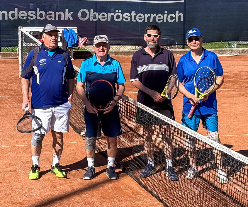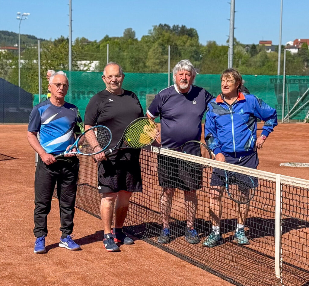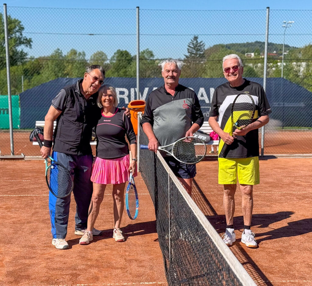 Die Feier begann mit einem spannenden Doppelturnier auf allen 4 Plätzen, wo 15 Herren und eine Dame ihr Tenniskönnen unter Beweis stellten.